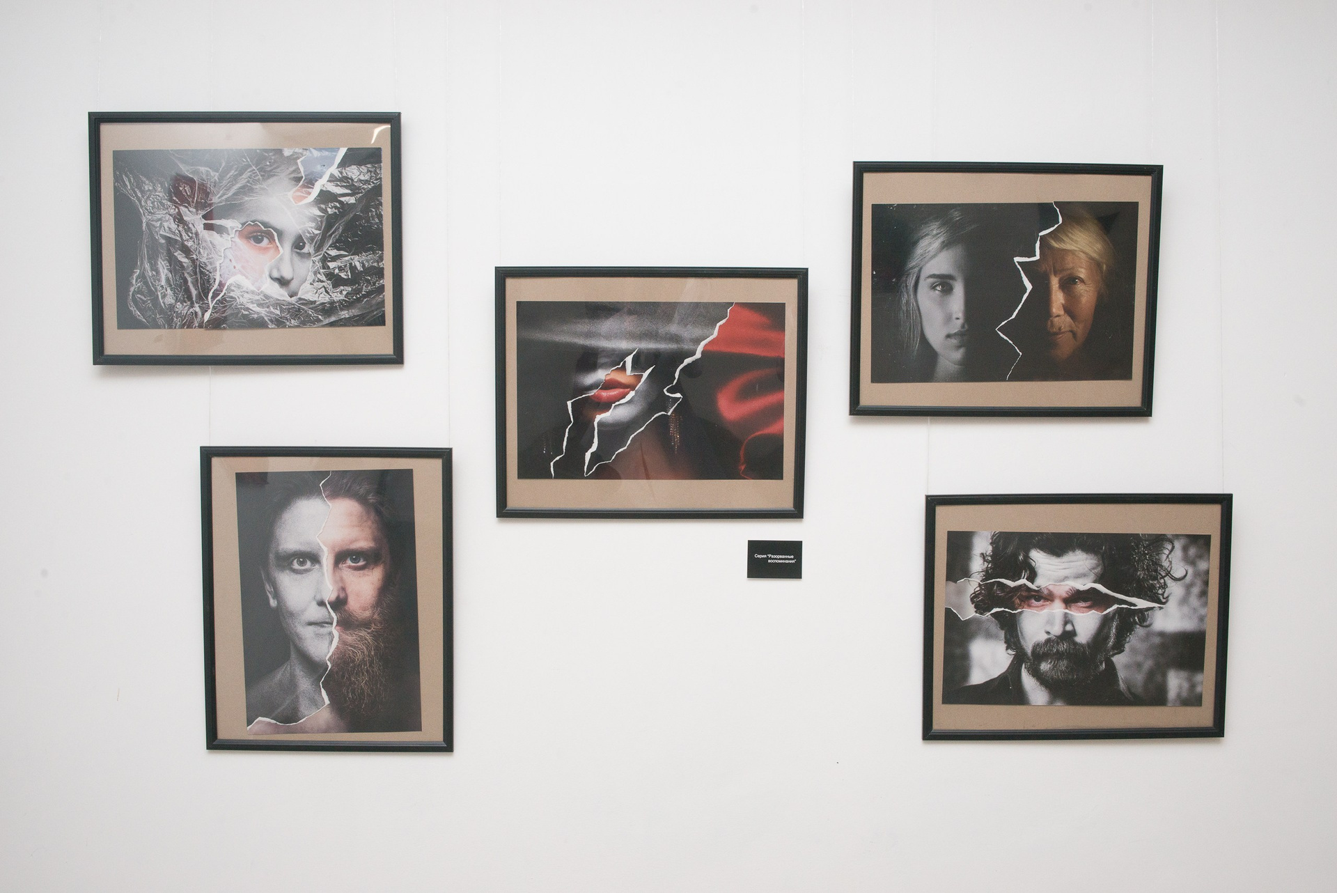 «Разорванные воспоминания» — одна и та же фотография представлена как в цветном так и в черно-белом варианте, черно-белая разорвана.